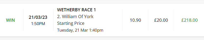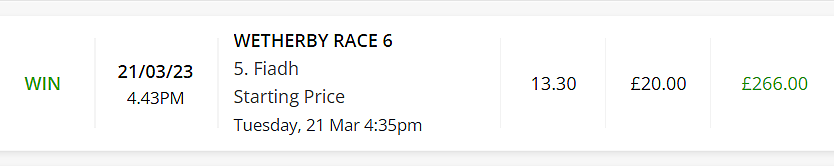 This is a Screen Grab from 20th March 2023 Showing a Tip that Came First the Very Next Day at 40/1